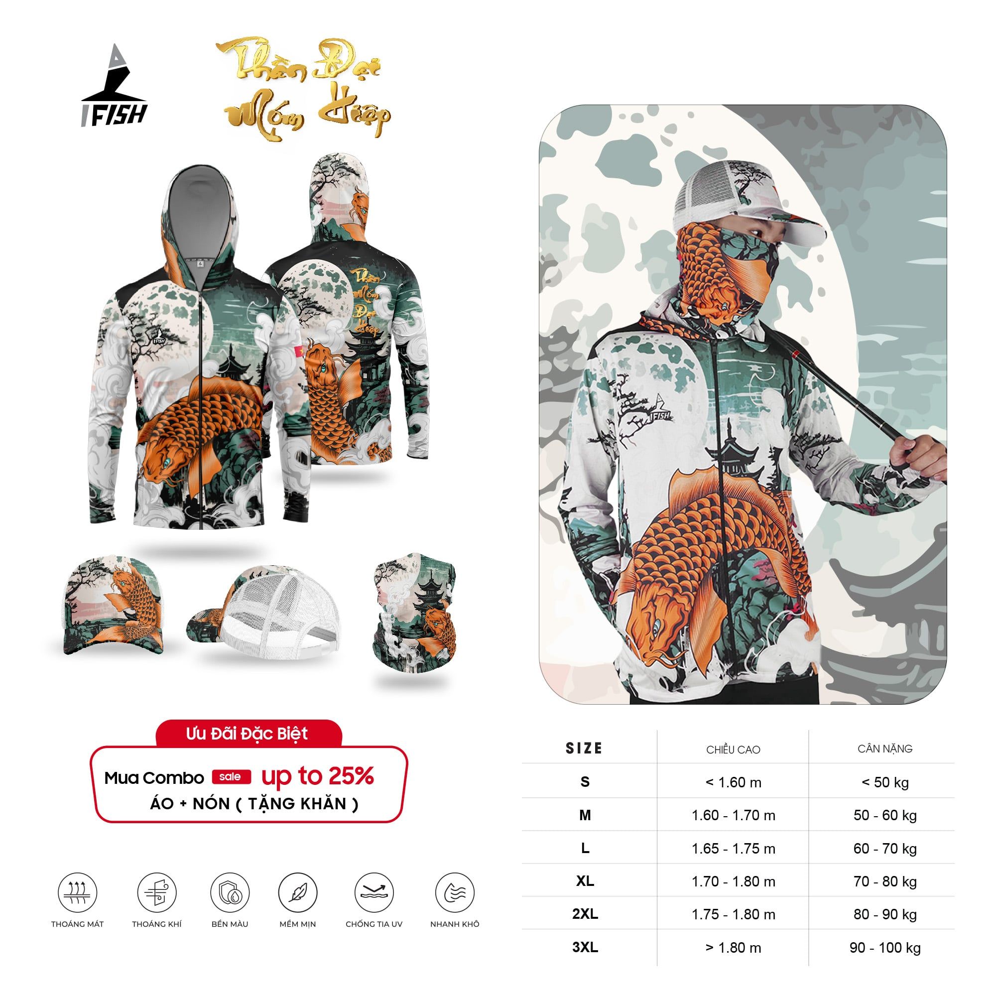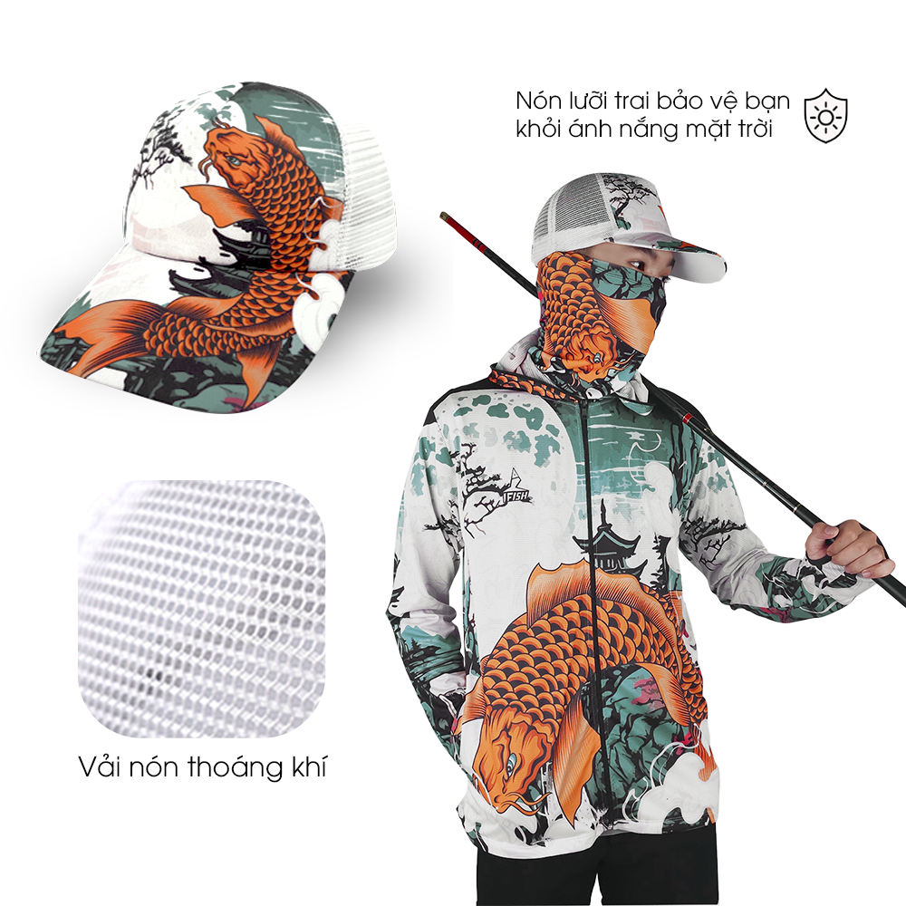 Áo Câu Cá THẦN MÓM ĐẠI HIỆP được thiết kế rộng rãi và linh hoạt, phù hợp cho cả nam và nữ. 2 bên áo có túi khóa kéo tiện lợi và được trang bị khóa kéo đến đỉnh nón. Thiết kế có nón trùm và tay áo dài có lỗ xỏ ngón tay cái, bảo vệ bạn khỏi ánh mắt mặt trời.
