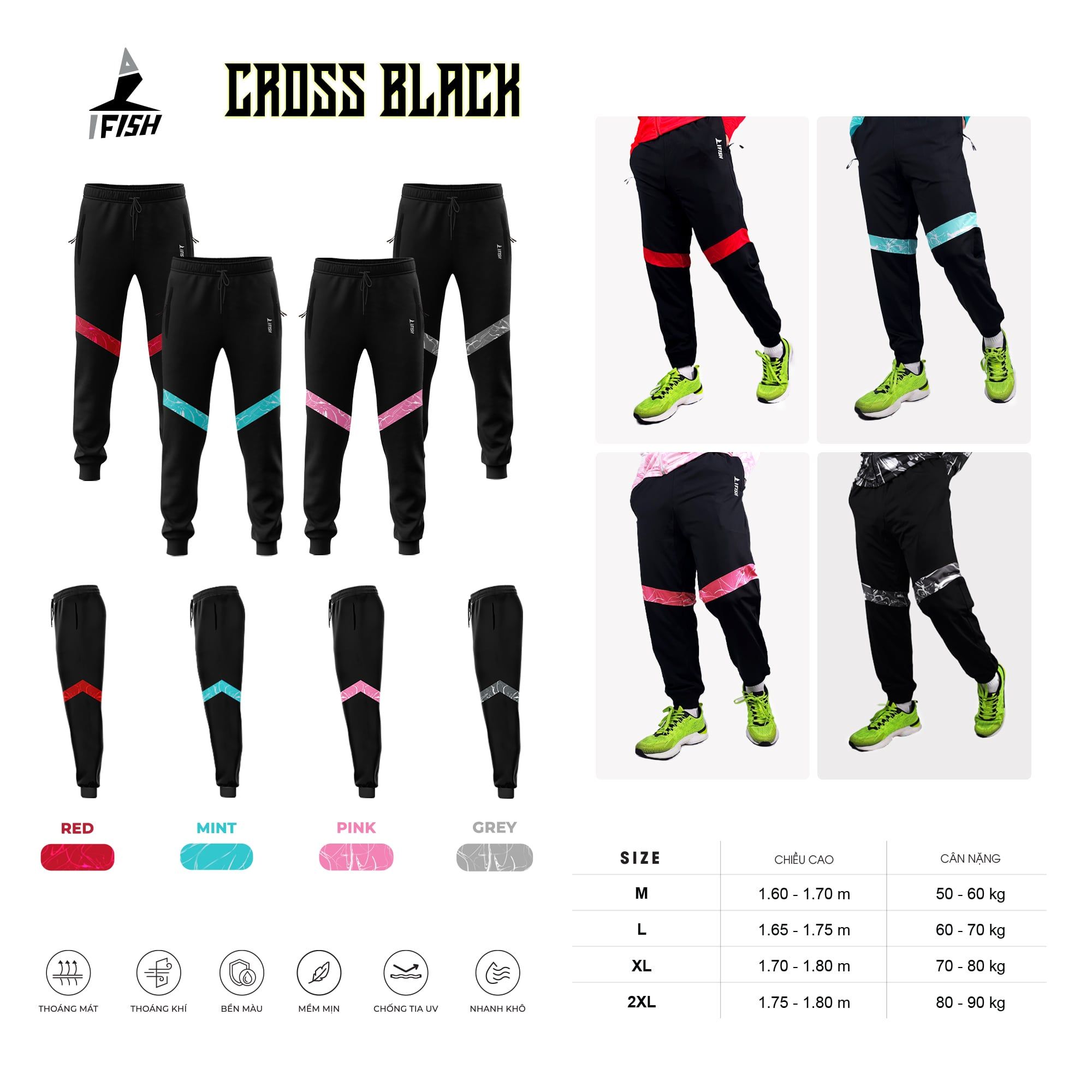 - QUẦN CÂU CÁ CROSS BLACK bán lẻ sẵn size M, L, XL, 2XL